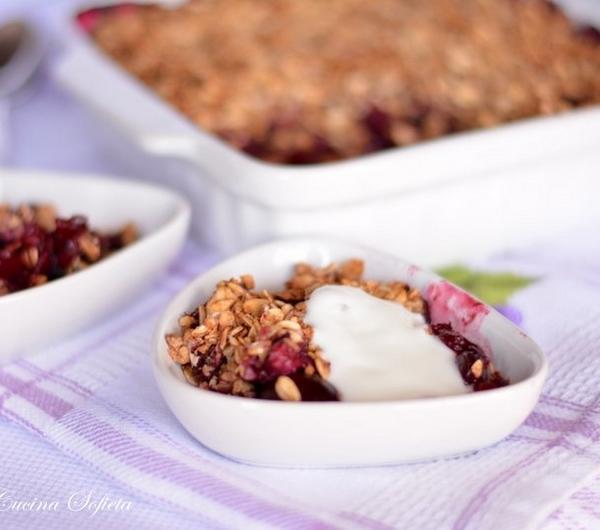 Szybko, pysznie i zdrowo! Zapraszam!S kładniki na 2 porcje( forma 16x16cm): na crumble:80 g błyskawicznych
