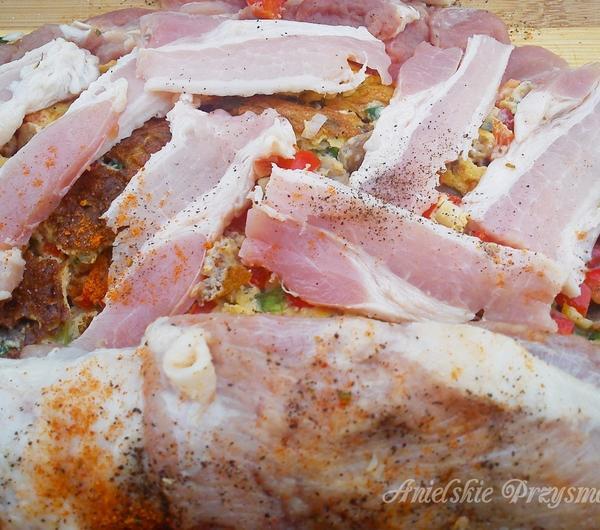 Wami gość jutrzejszego obiadu - rolada z niespodzianką : )Składniki:80 dag chudej