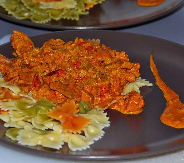 Składniki:Mięso mielone 500g10 dużych pieczarekśmietana 18% 200gjedna papryka czerwonaprzyprawa curryprzyprawa papryka słodkamakaronoliwasól, pieprzPrzygotowanie:Na patelni rozgrzewamy oliwę. Dodajemy mięso mielone, troszkę soli, pieprzu i smażymy.Kiedy mięso jest już gotowe odkładamy je na talerz. Do garnka wkładamy pokrojone w kostkę pieczarki oraz pokrojoną paprykę, zalewamy lekko wodą, dusimy. Kiedy pieczarki i papryka zmiękną odlewamy z nich wodę. Dodajemy do nich mielone mięso, 2 - łyżki curry, 2 łyżki słodkiej papryki. Wszystko zalewamy śmietaną i mieszamy.Doprawiamy solą i pieprzem według uznania. Ugotowany makaron polewamy mięskiem ….mniam palce lizaćSmacznego !!!
