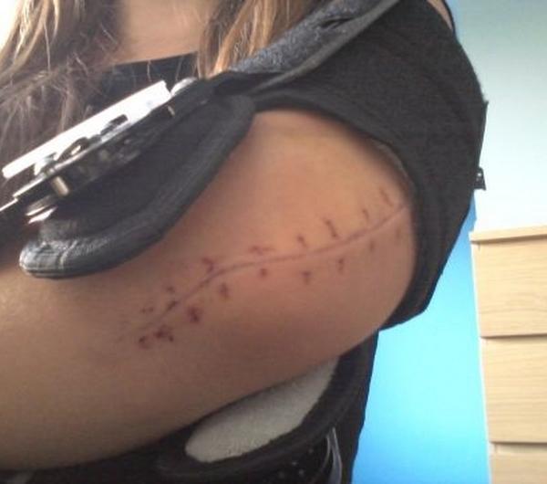 ...a do tego kupa nieszczęścia, więc o ciastkach za moment. Niecierpliwi i "brzydliwi" - proszę szybciochem przewinąć do kolejnego zdjęcia ciastek, bo nadchodzące nie będą apetyczne ;) Zachciało mi się jeździć konno, i nie, żeby to pierwszy raz był - jeżdżę, z przerwami, od dziecka. Nie jakoś super-wyczynowo, ale w sumie wiem, gdzie koń ma przód a gdzie tył, i generalnie sobie radzę z całym tym ustrojstwem ;) spaść też mi się zdarzyło, tylko zawsze jakoś...mniej boleśnie. A tym razem, cóż, wbiłam się z całym impetem w ziemię - łokciem. Efekt? Poniższy.