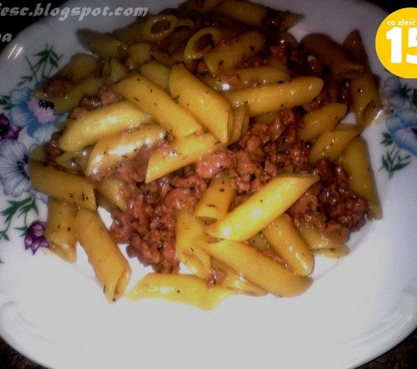 Kolejny dzień, kolejny przepis. Jako, że mamy sesję, a za oknem swoje żniwa zbiera zima, czujemy się zobowiązani do wrzucenia czegoś na "szybko" i "gorąco". W ten kanon niezwykle precyzyjnie wpisuje się propozycja Agnieszki, studentki Uniwersytetu Wrocławskiego. Zapraszam do zapoznania się z przepisem.Potrzebujemy:- 0,5 kg mięsa mielonego drobiowego- 0,5 kg makaronu penne (rurki)- opakowanie sosu pieczeniowego ciemnego (Winiary)- 2 łyżki śmietany- kawałek sera żółtego-zioła prowansalskie-sól-pieprzMięso mielone smażymy na patelni, z dodatkiem soli i pieprzu, cały czas mieszając, aby mięso było dokładnie rozdrobnione. W tym czasie gotujemy al dente makaron, w lekko osolonej wodzie. Sos pieczeniowy przygotowujemy zgodnie z instrukcja na opakowaniu (mieszamy z 300 ml wody:)), po czym łączymy z mięsem na patelni. Po 5 minutach sos jest prawie gotowy, dodajemy jeszcze tylko szczyptę ziół prowansalskich i śmietanę bądź odrobinę startego sera żółtego i mieszamy całość. Makaron odcedzamy i mieszamy z przygotowanym sosem. Takim oto prostym sposobem mamy pyszny, gorący posiłek.Realizacja przepisu jest bardzo szybka, a nam - studentom - zwłaszcza w okresie sesji, na czasie przecież zależy najbardziej :)Smacznego!