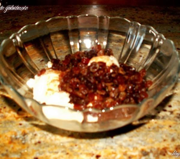 ser mieszam z połową cukru i z rodzynkami