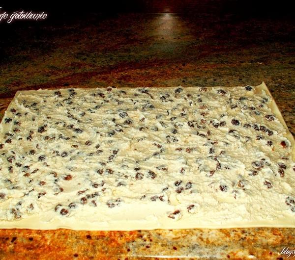 ciasto francuskie rozwijam, pokrywam warstwą nadzienia