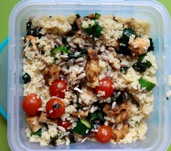 Kasza kuskus jest świetną opcją jesli chodzi o przekąske/ lunch na uczelnie czy do pracy. Wystarczy zalać ją ciepłą, osoloną