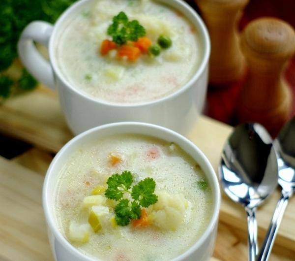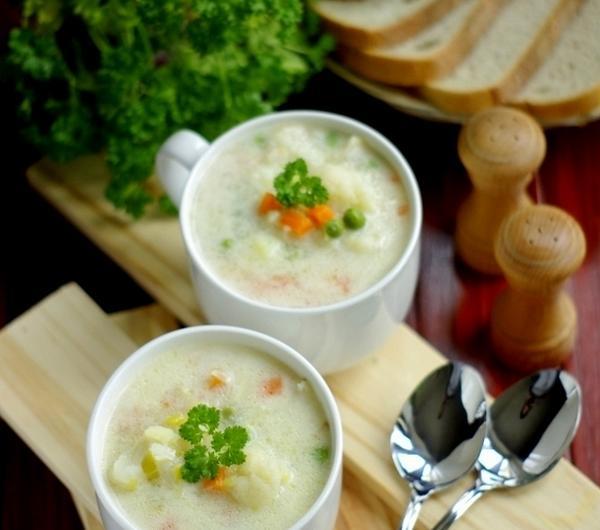 Opis : Zupa jarzynowa to pyszny klasyk wśród zup. Istnieją różne wersje kombinacji warzyw, ale ja gotuję zupę jarzynową tylko w ten sposób, bo taki smakuje nam najbardziej. Jest to ulubiona zupa mojego Męża, który nazwał ją sobie po swojemu "Zupa ogródkowa".Dbający o linię i nie tylko mogą pominąć mąkę i śmietanę, zwłaszcza latem, kiedy zupa smakuje nam bez takich dodatków, gdyż warzywa są tak słodkie, że niczym nie musimy ulepszać smaku zupy.Polecam.Z polskiego jarzynowego klasyku proponuję również " Sałatkę Jarzynową| "Pochodzenie : kuchnia polska; przepis własnyIlość : 2 lSkładniki :1,200 l wodyporcja mięsa na zupę (np. 1 noga z kurczaka, 2 skrzydełka kurczaka, 1/2 korpusu kurczaka, kość wołowa/wieprzowa)2 liście laurowe3 ziela angielskie1 większa marchewka, pokrojona w kostkę1 średnia pietruszka, starta na tarce2 garście półplasterków pora2 garście startego na tarce selera2 średnie ziemniaki, pokrojone w kostkę2-3 garście świeżego/mrożonego zielonego groszku lub zielona fasolka pokrojona na małe kawałkiok. 0 , 5 małego świeżego/mrożonego kalafiora/brokuła lub 50/50, podzielonego na różyczki (ok. 0 , 5 kg)koperek świeży/mrożony, posiekany (opcjonalnie, ale bardzo polecam)2-4 czubate łyżki gęstej śmietany1 pełna łyżka mąkisólpieprzPrzygotowanie :Do garnka wlać zimną wodę.Dodać porcję mięsną.Dodać liście laurowe i ziela angielskie.Doprowadzić do zagotowania.Gotować 15-20 min. na małym płomieniu pod przykryciem.Dodać marchewkę, pietruszkę, por i seler.Gotować na średnim płomieniu pod przykryciem do momentu, kiedy warzywa będą średnio-miękkie.Dodać ziemniaki, groszek i kalafior.Gotować na średnim płomieniu pod przykryciem, aż warzywa będą całkowicie miękkie.Z zupy odlać 1 dużą chochlę wywaru i dodać do niej śmietanę, aby się zahartowała.Wymieszać.Dodać mąkę.Wymieszać.Wlać do gotującej się zupy.Zagotować ponownie i gotować jeszcze 2 min.Jeśli zupa wyjdzie nam zbyt gęsta (chodzi o ilość warzyw w stosunku do wywaru), należy dolać odrobinę wody i ponownie zagotować zupę.Odstawić z płomienia.Dodać posiekany koperek.Doprawić solą i pieprzem.Wymieszać.Podawać solo lub z pieczywem.
