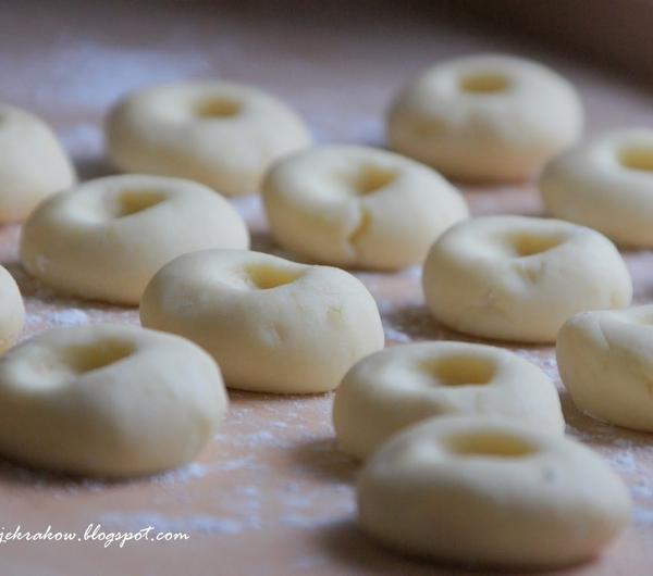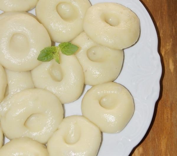 soli i dobrze wyrobić. W rękach lepić kulki, lekko je spłaszczyć, a w środku każdej zrobić palcem małe wgłębienie. Wrzucić na osolony wrzątek i gotować 3 minuty od wypłynięcia.Smacznego :)