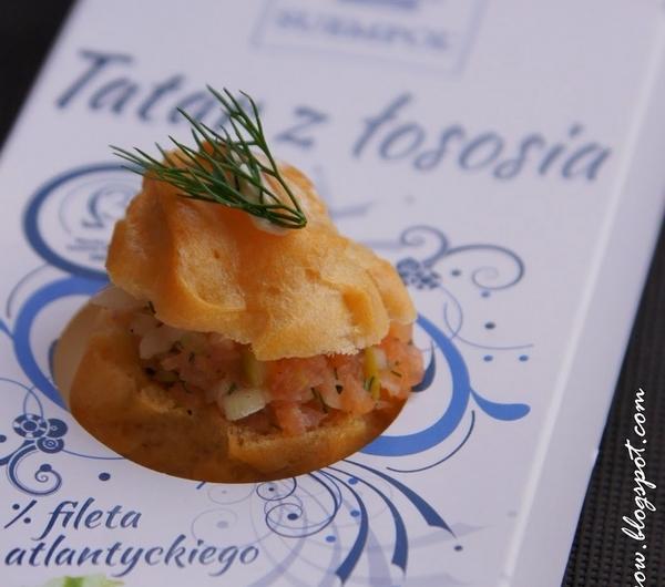 łosoś grał tu pierwszoplanową rolę.Korpusy ptysiowe zrobić możecie z całości ciasta. Wyjdzie ich wówczas zdecydowanie więcej niż będziecie potrzebować do tatara. Niewykorzystane ptysie z powodzeniem można zamrozić lub wykorzystać za kilka dni. Bardzo, bardzo Wam polecam :)Składniki na ciasto:1 szkl