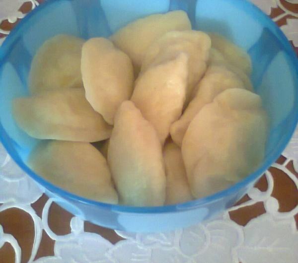 Składniki na ciasto:- 1 kg. mąki- ok. 0,5 l. wody- 1 jajko- szczypta soliSkładniki na farsz:- ok. 2 kg. ziemniaków- 2 kostki sera białego półtłustego- 1 cebula( pokrojona drobniutko i zeszklona na tłuszczu)- cebulę można dodać, ale nie koniecznie, zależy od gustu, smakują również bez- sól, pieprz i przyprawy do smaku( ja dodaję odrobinę vegety)Margaryna, olej bądź smalec do polania( wybór wg. uznania)WYKONANIE:Na samym początku z przedstawionych składników wyrabiamy ciasto. Ilość dodanej wody zależy od gęstości ciasta. Wyrobione ciasto powinno być troszkę luźniejsze, aby dobrze lepiły się pierogi. Tak przygotowane ciasto po troszkę rozwałkowujemy i wycinamy szklanką placuszki na pierogi. Następnie przygotowujemy farsz( ugotowane ziemniaki tłuczemy, po ostygnięciu dodajemy ser, przyprawy i wg uznania uprzednio zeszkloną cebulkę. Jeszcze raz wszystko ze sobą tłuczemy i doprawiamy do smaku). Farsz nakładamy do wyciętych placuszków i formujemy kształt pierogów. Potem wrzucamy po kilka sztuk na gotującą się wodę i gotujemy parę minut od chwili wypłynięcia na wierzch. Po ugotowaniu polewamy tłuszczem, aby pierogi się nie sklejały.Można podawać ze skwarkami bądź zeszkloną uprzednio cebulką