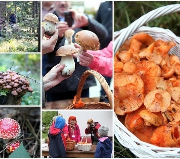 Po odebraniu koszy, udaliśmy się podejrzeć pracę mykologów, którzy przygotowali piękną wystawę grzybów . Ku mojemu zaskoczeniu nie były to plakaty i ryciny grzybów, ale wielki stół z dziesiątkami okazów zebranych w okolicznych lasach. Były tam pięknie opisane i oznaczone grzyby jadalne, ale też niejadalne i trujące. Niesamowita sprawa móc porównać grzyby, które tak łatwo można ze sobą pomylić w lesie. Po takiej "lekcji na żywo" zbieranie jest dużo łatwiejsze. Z tego co się dowiedziałam wystawa grzybów jest stałym elementem Święta Rydza. Brawo za pomysł i realizację dla Stowarzyszenia Na Grzyby !