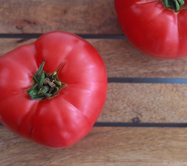 Gdy na straganach pojawiają się pierwsze pomidory, jestem w stanie żywić się praktycznie tylko nimi. Tego roku – dzięki pięknej, słonecznej wiośnie – sezon na nie rozpoczął się dosyć wcześnie, co wyjątkowo mnie cieszy. Najbardziej lubię te malinowe, prosto z krzaka, gorące od słońca i przesiąknięte zapachem lata. Do tego jeszcze bób i cukinia, by móc w pełni poczuć lato na talerzu :)