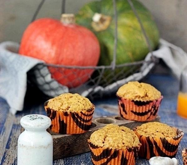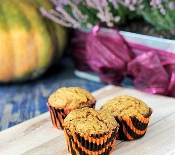Wykonanie:Mąkę, cukier, proszek, sodę i przyprawy mieszamy w jednej misce. Olej i sok z dyni mieszamy i dolewamy do suchych składników. Całość mieszamy niezbyt dokładnie. Przekładamy do foremek muffinkowych wyłożonych papilotkami. Pieczemy w 190 stopniach przez około 20 minut.