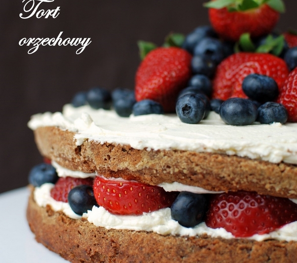 Idealna propozycja dla wszystkich wielbicieli orzechowych wypieków!Ciasto jest bardzo wilgotne dzięki zawartej w nim marchwi. Jednocześnie w smaku wyczuwamy jedynie orzechy. Całość dopełniają krem z mascarpone oraz świeże owoce.Miłośnicy tortów będą w pełni usatysfakcjonowani :)Przepis pochodzi z tej strony.Składniki:250 g marchwi,250 g mielonych orzechów włoskich (lub laskowych)5 dużych jajek,2/3 szklanki fruktozy (cukru brzozowego)1 łyżka esencji waniliowej5 łyżek tartej bułki1 czubata łyżeczka proszku do pieczenia2 łyżki rumu3 łyżki gorącej wody,szczypta solido nasączenia:1 łyżka rumu1/4 szklanki naparu z ulubionej herbaty (ostudzonego)krem:500 g serka mascarpone2-4 łyżki syropu z agawy (fruktozy/cukru brzozowego)2 łyżki rumudodatkowo:świeże owoce