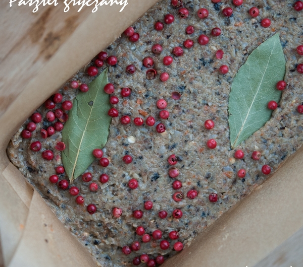 Wykonanie:Warzywa (marchew, seler, pietruszka, cebula, czosnek) obrać i pokroić na kawałki. Mięso i pieczarki umyć. Wszystko ułożyć w dużym naczyniu żaroodpornym, polać oliwą, posypać majerankiem i kminkiem oraz obficie solą i pieprzem. Wymieszać aby przyprawy równomiernie pokryły warzywa i mięso. Całość przykryć pokrywką lub folią aluminiową i wstawić do gorącego piekarnika. Piec w temperaturze 180-190 stopni do czasu aż warzywa będą miękkie, około 1 godziny. Odstawić do ostudzenia.Upieczone warzywa i mięso zmielić 2-3 razy w maszynce do mięsa. Połączyć z kaszą ugotowaną na sypko, suchą kaszą oraz jajkiem i dokładnie wymieszać. Doprawić do smaku solą, pieprzem, majerankiem, kminkiem, gałką muszkatołową oraz ewentualnie innymi ulubionymi przyprawami.Przełożyć do keksówki wyłożonej papierem do pieczenia. Wierzch udekorować listkami laurowymi i czerwonym pieprzem. Pasztet wstawić do gorącego piekarnika i piec 1 godzinę w temperaturze 180 stopni.Smacznego :)