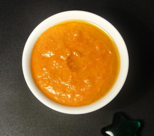 oliwy i kuminu należy zblenderować. Przełożyć do miseczki, posypać kuminem i polać