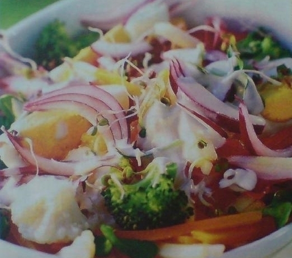 kiełki słonecznika oraz soi.Sos: wymieszać