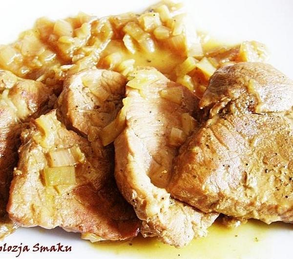 szynki wieprzowej pokrojonej w plastry ale ładnie wyglądałaby słodka polędwiczka przygotowana w całości i pokrojona dopiero na półmisku. Przepis ten zanotowałam sobie jako propozycję dla gości i Wam również polecam:)