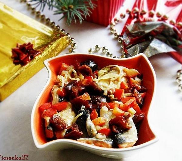 Śledzie moczyć kilka godzin (ja zastąpiłam marynowanymi ). Pokroić polać sosem, odstawić na 12 godzin.