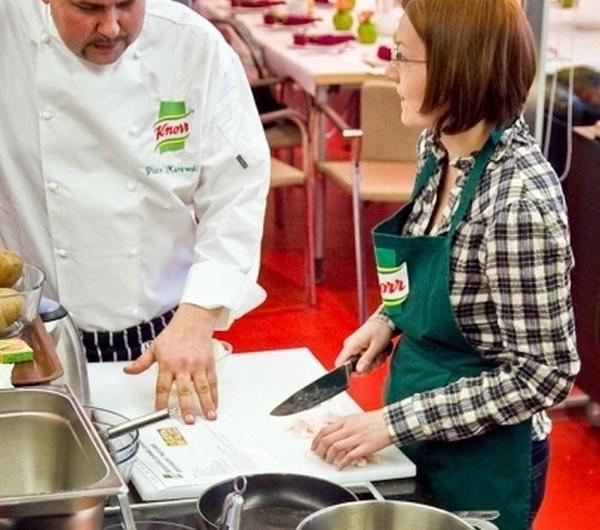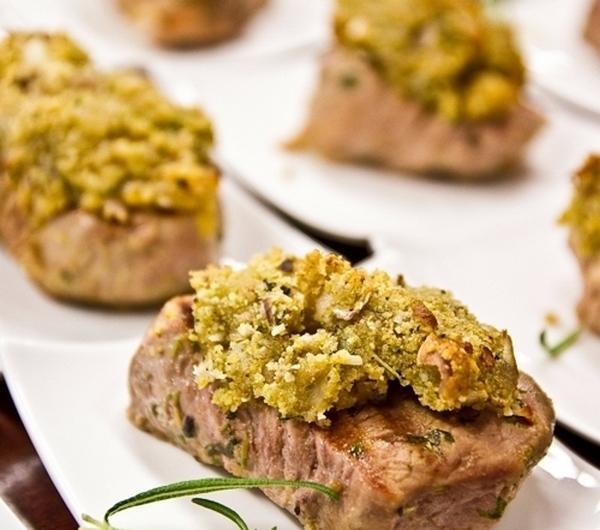Polędwiczki wieprzowe pod chrupiącą panierką z orzechówSkładniki:1 kg polędwiczek wieprzowychkostka rosołowa2 łyżki oliwy z oliwekchleb tostowy200 g pistacjipęczek szałwiipęczek oregano2 ząbki czosnku100 ml oleju roślinnegosok z połówki cytrynykostka margaryny lub masła300 g cebuli szalotki100 g parmezanuSposób przygotowania:1. Polędwicę oczyść z błon i pokrój na 2 cm grubości steki.2. Kostkę rosołową Knorr rozetrzyj z oliwą, sokiem z cytryny oraz z częścią posiekanej szałwii i oregano. W tak przygotowanej marynacie obtocz mięso i odstaw na chwilę.3. Chleb tostowy okrój ze skóry i zmiksuj razem z orzechami pistacjowymi. Dodaj starty ser parmezan, pozostałą część ziół, masło oraz podsmażoną cebulkę (wcześniej pokrojona w kostkę). Wszystko razem dokładnie wymieszaj.4. Mięso obsmaż na patelni grillowej z obu stron. Na jego powierzchnię ułóż odrobinę przygotowanego wcześniej chleba z orzechami.5. Mięso zapiecz jeszcze w piekarniku nagrzanym do 200ºC przez ok. 6 minut lub do czasu, aż panierka na mięsie się delikatnie zarumieni.