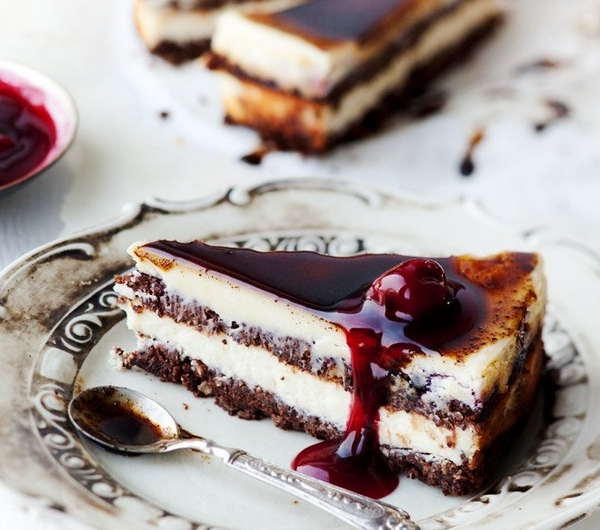 dżem, wylać resztę masy serowej i piec przez 13 minut . Wyjąć z piekarnika i ostudzić. Wstawić do lodówki do zastygnięcia masy.