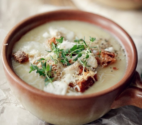 tymianekWskazówkiZupę można zapiekać w piekarniku z włączoną funkcją grilla na średnią moc (lub 220 stopni grzałki góra i dół). Gorącą zupę wlać do żaroodpornych naczynek lub miseczek, na wierzch położyć