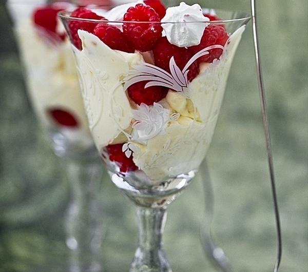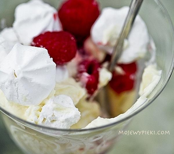 Letni deser gotowy w dwie minutki :-). W roli głównej mój ulubiony lemon curd, śmietanka i maliny. Z bezami, na wzór bałaganu z Eton . Możecie użyć swojego ulubionego przepisu na lemon curd (na blogu znajdziecie przepis klasyczny jak i 'odchudzony'). Cała sprawa w chaosie sprowadza się do tego, że deser jest lekko kwaśny, ale taki ma być! Jest pyszny :-).Składniki na 4 porcje:300 ml śmietany kremówki 30%, schłodzonej3 łyżki lemon curdu (przepis - patrz wstęp)garść małych bezików200 g świeżych malinŚmietanę kremówkę ubić na sztywno. Ostrożnie i delikatnie wymieszać z lemon curdem, tylko do połączenia.W dowolnej kolejności układać w pucharkach: krem, bezy, maliny, kończąc warstwą malin.Smacznego :-).