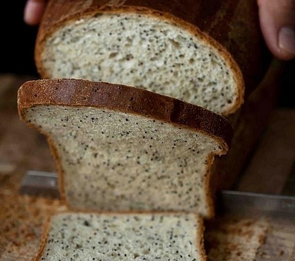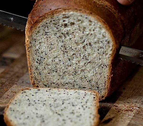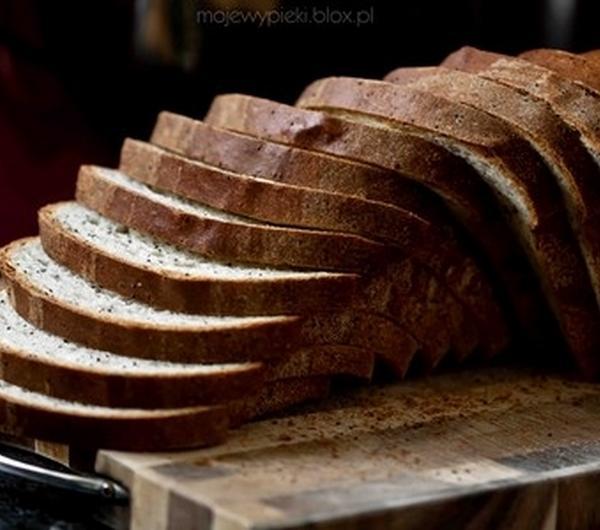 Chleb jest lekki, puszysty i na drożdżach. Do zupy, do kanapek, na tosty. Bardzo smakuje dzieciom. Można go również piec w maszynie do chleba, ale jego konsystencja będzie dość zbita (próbowałam). Polecam :).Składniki na 1 bochenek:40 g maku650 g mąki pszennej chlebowej2 łyżeczki soli50 g masła, o temperaturze pokojowej lub roztopionego1 łyżeczka cukru7 g suchych drożdży lub 15 g świeżych drożdży375 ml mleka, o temp. pokojowej1 średnie jajko, rozkłóconeDo większej miski wsypać mąkę, mak, cukier, sól, suche drożdże (ze świeżymi trzeba wcześniej zrobić rozczyn). W mące zrobić dołek, wlać mleko, masło, jajko. Ciasto wyrabiać, aż będzie miękkie i nie klejące. Uformować kulę, włożyć do miski, przykryć ściereczką lnianą i pozostawić w cieple do podwojenia objętości na około 1,5 - 2 godziny.Formę keksówkę o wymiarach 29 x 10 cm wysmarować masłem, wysypać semoliną.Wyrośnięte ciasto krótko zagnieść, uformować w podłużny bochenek, umieścić w keksówce. Keksówka powinna być do połowy pełna. Przykryć lnianą ściereczką i pozostawić w cieple do ponownego wyrośnięcia (około 1 godziny). Chleb na pewno wyrośnie sporo ponad keksówkę (jeśli użyjecie formy o takich samych wymiarach jak powyżej).Po tym czasie powierzchnię chleba posmarować mlekiem. Piec w piekarniku rozgrzanym do 230°C przez 15 minut, następnie zmniejszyć temperaturę i piec dodatkowe 20 - 30 minut w 200°C. Wypieczony chleb powinien po postukaniu od spodu wydawać głuchy odgłos. Wystudzić na kratce.Metoda dla maszynistów:Wszystkie składniki umieścić w maszynie do pieczenia, według instrukcji: najpierw płynne, potem sypkie, na końcu drożdże. Nastawić program do wyrabiania ciasta 'dough', pozostawić do wyrośnięcia. Potem wyjąć, uformować bochenek, dalej postępując według powyższego przepisu. Chleb można również upiec na programie podstawowym w maszynie.Smacznego :-).Przepis pochodzi z książki Lindy Collister 'Easy baking'.