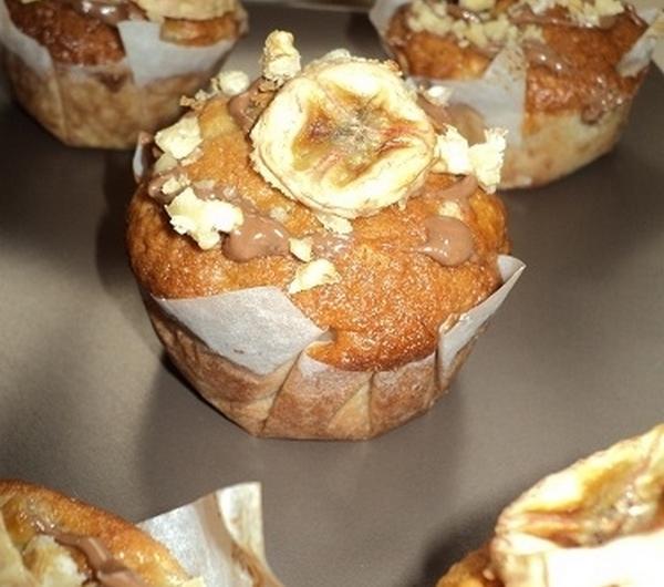 Wykonanie:Piekarnik rozgrzewamy do temp. 180 st. Papilotki umieszczamy w zagłębieniach formy na muffiny.Obieramy banany, kroimy w drobną kostkę i skrapiamy sokiem z cytryny. Mąkę mieszamy z proszkiem do pieczenia i sodą oczyszczoną.Jajko mącimy, dodajemy do mąki razem z cukrem, olejem, jogurtem, cukrem waniliowym i pokrojonymi bananami. Papilotki wypełniamy ciastem - można spokojnie do pełna, niewiele urosną - i wygładzamy na wierzchu.Muffinki pieczemy około 30 min na środkowym poziomie piekarnika. Po ich upieczeniu trzymamy jeszcze przez około 5 min w formie, a potem z niej wyciągamy i studzimy.Ozdabiamy tak, jak mamy na to ochotę. ;) Ja wykorzystałam ciepły piekarnik i wyłożyłam w nim na blaszce kilka plasterków banana i piekłam je chwilkę. W tym czasie polałam muffinki rozpuszczoną czekoladą, obsypałam posiekanymi orzechami i na koniec przyozdobiłam suszonym plasterkiem banana.Smacznego! ;)