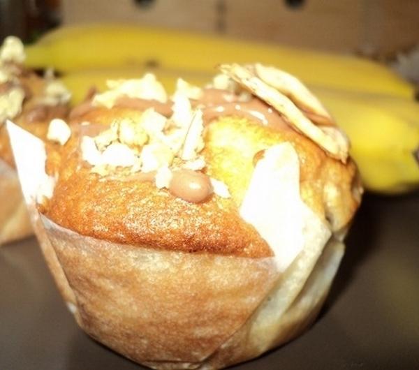 Propozycja na dzisiaj: pyszne muffinki z bananami! Coś dla fanów bananów! ;) Mięciutkie i sprężyste, o intensywnym, bananowym smaku. Dzięki dużej zawartości owoców są przyjemnie mokre, a w polewie czekoladowej i obsypane orzechami...mmm... Po prostu musicie wypróbować! Choćby dla tego bananowo-waniliowego zapachu, który roznosi się po mieszkaniu...Przepis pochodzi z książki "Muffiny".Składniki na 14 sztuk:250 g bananów2 łyżki soku z cytryny250 g mąki pszennej2 łyżeczki proszku do pieczenia1/2 łyżeczki sody oczyszczonej1 jajko125 g cukru1 op. cukru waniliowego80 ml oleju roślinnego250 g jogurtu naturalnegoDodatkowo:polewa czekoladowaposiekane orzechy włoskiekilka plasterków suszonych, bądź pieczonych bananów