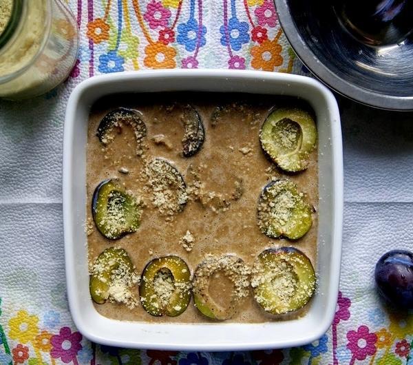 śliwki były dość mocno dojrzałe i wypuściły sporo soku, a to (plus niegęsta masa) spowodowało, że miałam wrażenie, zaglądając do piekarnika, że nici z tego wyjdą, a nie coś zjadliwego. Trzymałam w piekarniku ok. 1/2 godziny, po wyciągnięciu chwilę odczekałam, żeby wstępnie przestygło, posypałam lekko mielonymi