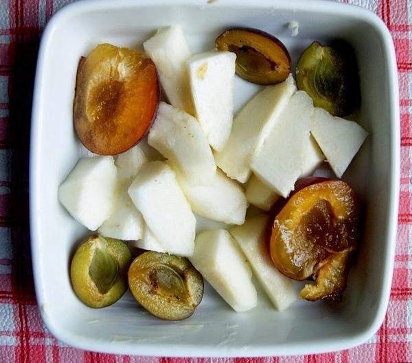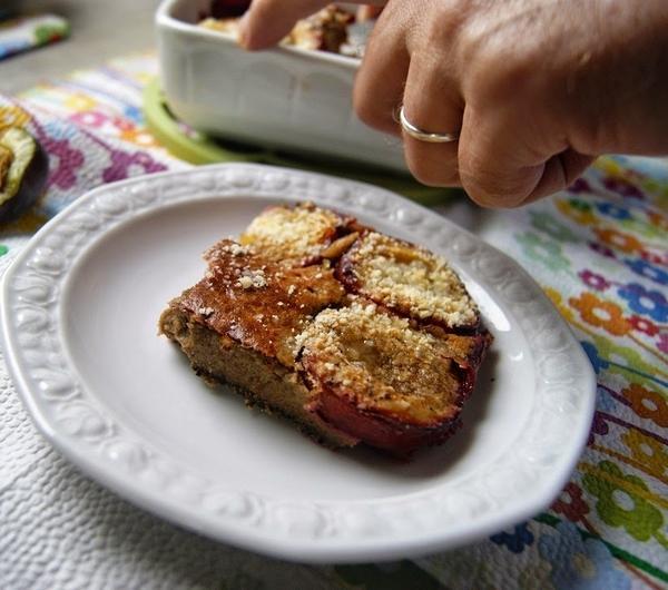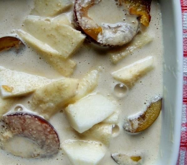 owoce, dużo jem na surowo, ale sporo też zapiekam, zwykle pod kruszonką taką czy inną .Stało się tak pewnego dnia, że w tv zobaczyłam deser ze
