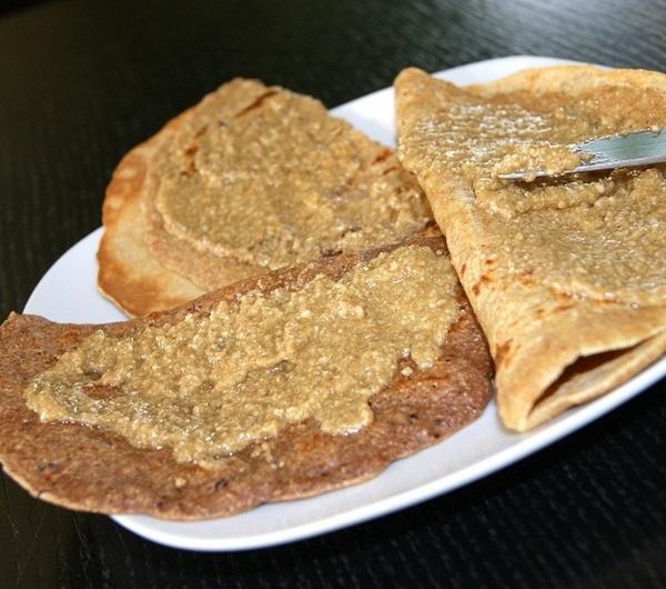Dawno nie robiłam sobie naleśników na śniadanie i przyszła mi na nie ochota, tym większa gdy na blogu Sisters'cooking znalazłam przepis na pastę tahini z