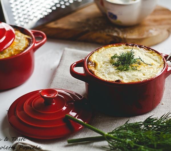 Kilka słów od autora:1. Jogurt można zastąpić śmietaną.2. Skórka z limonki nadaje potrawie bardzo silny aromat, który nie każda osoba toleruje. Można dany składnik pominąć lub zastąpić skórką z cytryny.3. Z podanej ilości składników otrzymałam 4 zapiekanki. 3 małe - okrągłe śr 10 cmx5 cm gł. x 2 szt, prostokątna 14x9x5 cm oraz jedną dużą 23x16x5 cm.Jogurt wykorzystany w przepisie,