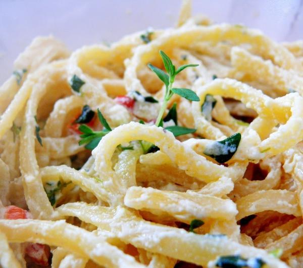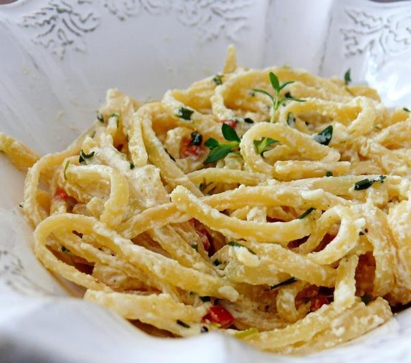 A poniżej przepis na mój dzisiejszy obiad. Przygotowanie zajęło mi 10 minut :) Miałam ochotę na makaron, więc zajrzałam do lodówki żeby sprawdzić co by tam można wrzucić i znalazłam w miseczce białą serową pastę. Nie byłam do końca pewna co to za mieszanka, ale efekt połączenia jej z makaronem był niesamowity :) Okazało się, że to pasta na kanapki, na którą moja mam dostała przepis od swojej przyjaciółki Aśki. A przepis jest bardzo prosty:Składniki:garść makaronu bavette ( bądź innego)pół ostrej papryczkiząbek czosnkuodrobina masła3 łyżki pastypasta:270 g fetyłyżka cytryny2 łyżki oliwygarść świeżego tymiankuząbek czosnkuPrzygotowanie:1) Podsmażamy na patelni na maśle posiekaną papryczkę i czosnek2) Wrzucamy na patelnię ugotowany makaron3) Mieszamy wszystkie składniki pasty i dorzucamy 3 łyżki do makaronu, mieszamy wszystko na małym ogniuGOTOWE! :)a resztę pasty mamy na kanapki :)