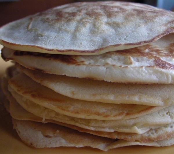 180 g mąki pszennej,2 płaskie łyżeczki proszku do pieczenia,2 łyżki cukru trzcinowego,szczypta soli,niepełna szklanka kefiru naturalnego,dwie łyżki mleka,30 g roztopionego masła,2 jajka.W misce wymieszałam mąkę z proszkiem, cukrem, solą. Dodałam jajka, kefir, mleko i masło (które wcześniej rozpuściłam i przestudziłam). Wszystko szybko wymieszałam, bo przeczytałam w jednym z przepisów, że im dłużej miesza się ciasto, tym naleśniki są bardziej twarde. Zatem potraktowałam ciasto mikserem przez mniej niż 30 sekund. Powinno być dość gęste, gęściejsze niż na polskie naleśniki.Przeczytałam też, że lepiej pancakes smażyć na maśle niż na oleju, więc smarowałam patelnię odrobiną masła, ale bardziej symbolicznie niż konkretnie;-)Smażyłam je na niewielkim ogniu, czekając aż powierzchnia placka będzie wyglądała na ściętą. Na moment zwiększałam ogień, żeby naleśnik się przyrumienił i dopiero przewracałam na drugą stronę i ponownie zmniejszałam ogień. Jest z nimi trochę zabawy, bo pancakes potrzebują więcej czasu niż nasze naleśniki, dlatego, bo są grubsze i poza tym muszą trochę podrosnąć podczas smażenia.