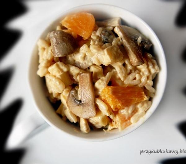 Dziś dość ciekawe połączenie smaków. Inspiracją był przepis pochodzi z książki "Sałatki z całego świata na przystawkę, jako dodatek lub samodzielne danie - pyszne, urozmaicone, wykwintne" wyd. Cykada. Podaję z moimi zmianami.