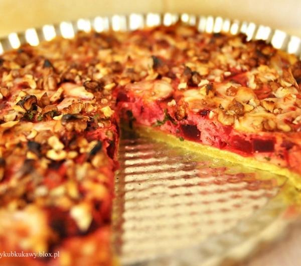 buraczki. Wykładamy wszystko na podpieczony spód. Na wierzch kładziemy kawałki