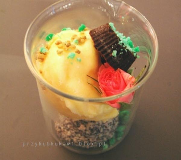zupę z buraczków z mleczkiem kokosowym i kwiatem czarnuszki, chlebki z kaszy jaglanej z pastą z bobu i molekularnym kawiorem truskawkowym, lody cytrynowe z musem makowym i pralinką z nadzieniem z płatków róży...Było bardzo ciekawie. Fajnie się tam bawią smakami, więc myślę, że warto spróbować. Chyba największym szokiem ta kuchnia będzie dla tych, którzy nie wyobrażają sobie potraw bez sztucznych wzmacniaczy smaku...dla reszty będzie ciekawą przygodą. I ja dziękuję za te przygodę, zaproszenie i miłe towarzystwo :)