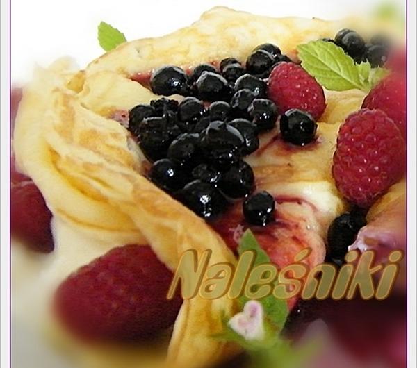 jagody.Wykonanie naleśników :Do naczynia o pojemności ok. ¾ l wbijamy