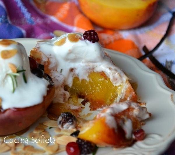Cukier na brzoskwiniach się skarmelizował, ale nie przypalił.