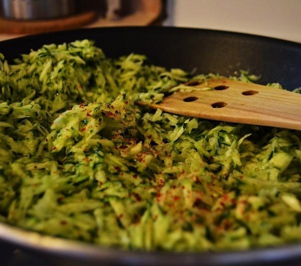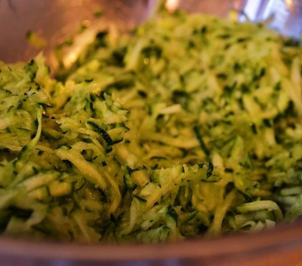 cukinii. Będziemy trzeć ją wraz ze skórą, aby nie tracić wartościowego błonnika. A więc umytą