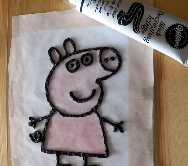 Czarnym lukrem w tubce rysujemy wszystkie kontury. Odstawiamy do zamrażalnika.