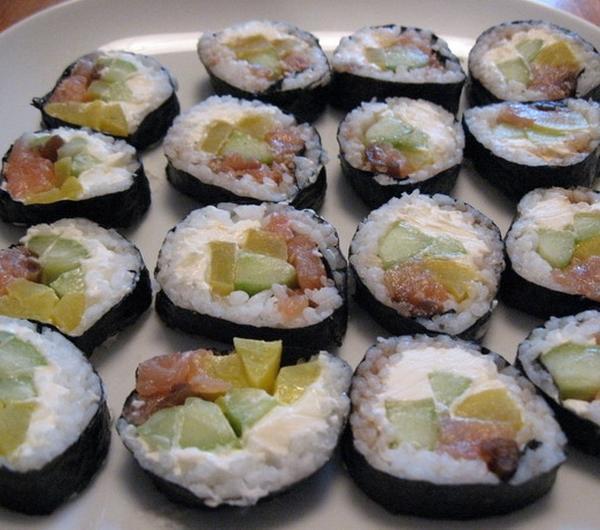 maki. To potrawa japońska, spożywana najczęsciej palcami.