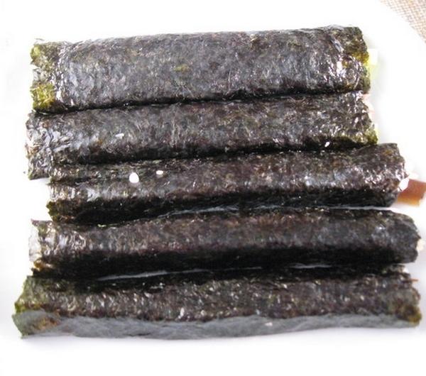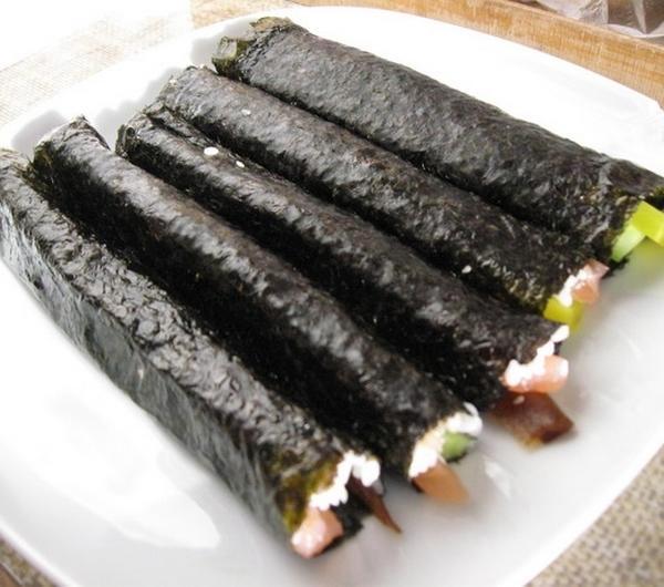 ryż ugotowany tak, aby się kleił zawinięty w wodorosty