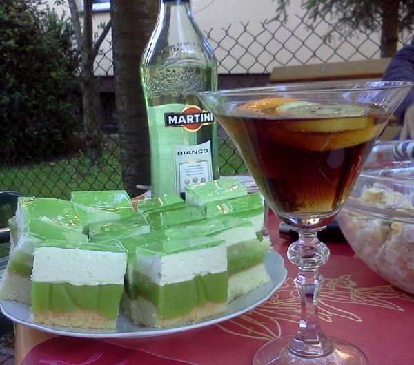 galaretkę, mieszamy, wylewamy na pierwszą masę, wkładamy do lodówki, żeby stężałoOstatnią