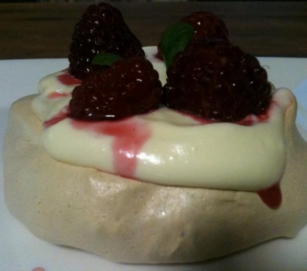 malinami ;-) Niestety jeszcze mrożonymi, ale deser był równie pyszny ;-DGoście zjedli nawet po dwie dokładki...Przepis jest dziecinnie prosty...