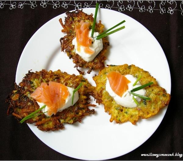 oliwie z dwóch stron na rumiano. Placuszki odsączać z nadmiaru tłuszczu na ręczniku papierowym. . Podawać z kleksem