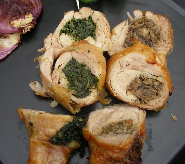 kurczaka szybciej się grillują i ciekawiej wyglądają. Wilgotne farsze odpowiednio doprawione, nadają delikatnemu drobiowemu