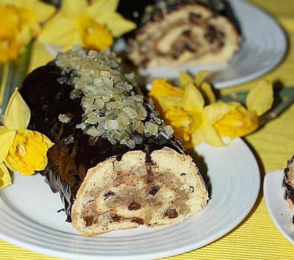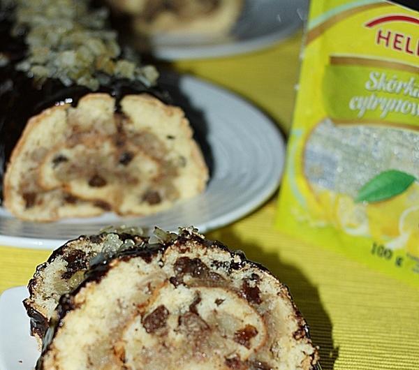 biszkopt.Bardzo delikatnie zawijałam roladę by nie popękała .Kiedy ostygła przekroiłam ja na