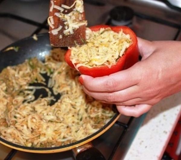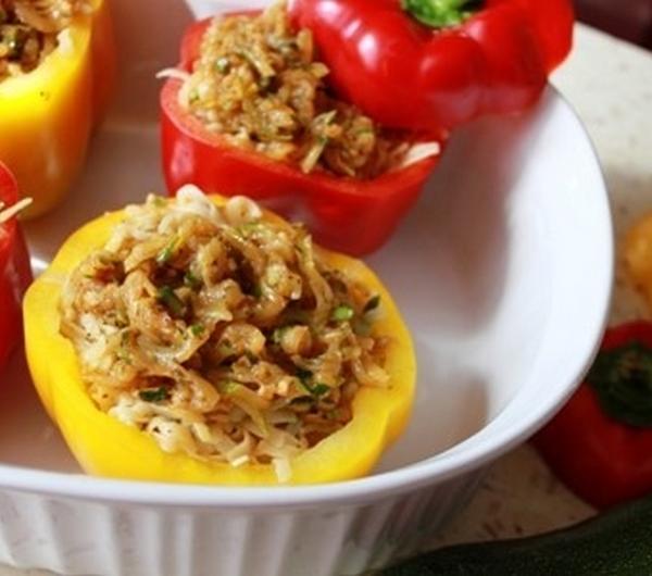 papryki w naczyniu żaroodpornym i do każdej wlałam