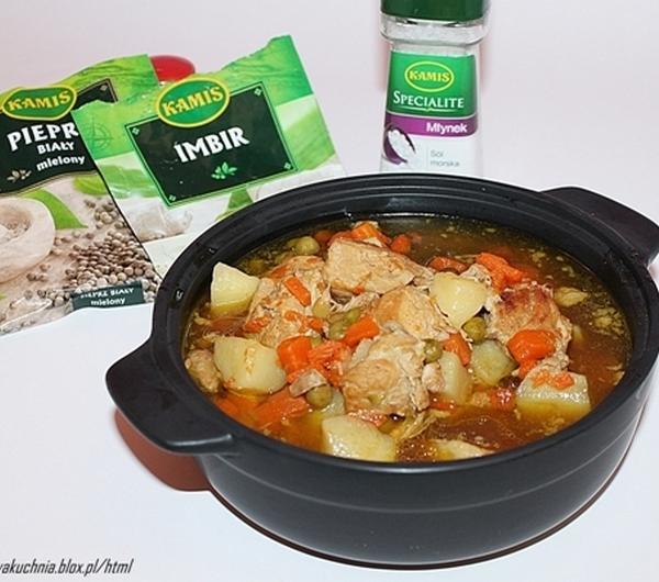 Ziemniaki obieramy w kostkę, dodajemy warzywa ze słoika i gotujemy z 40 minut na końcu dodajemy